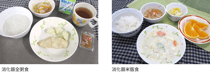 (流動食、五分粥食、消化器五分食、消化器全粥食、消化器米飯食)