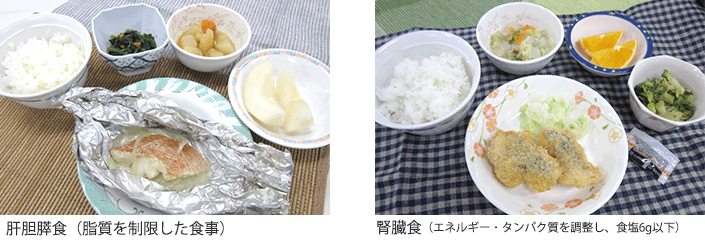 (糖尿病食、エネルギーコントロール食、腎臓食、透析食、動脈硬化食、妊娠高血圧食、肝臓病食、肝胆膵食、クローン病食、潰瘍食、貧血食、小児腎症食、経管栄養食 等)